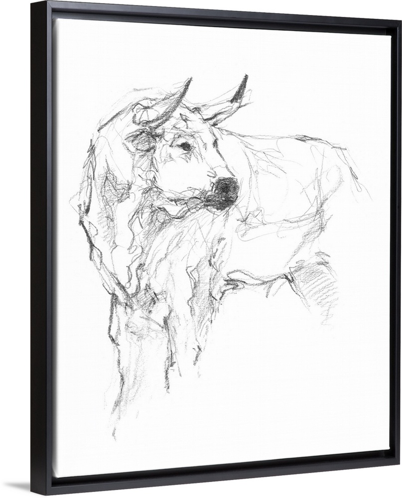 Art Farmhouse Black and White Wall Art Decorative Art Drawing Ethan Harper Illustrations Animal Illustrations Wildlife Cow