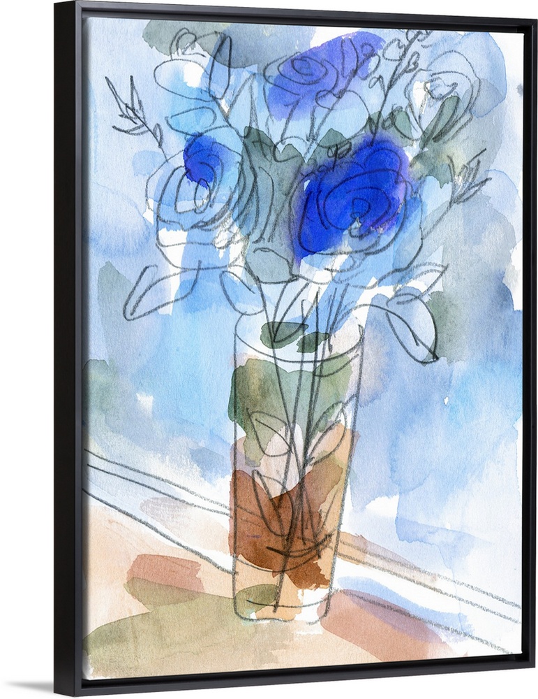 Art Blue Wall Art Royal Blue Decorative Art Florals Painting Melissa Wang Watercolor