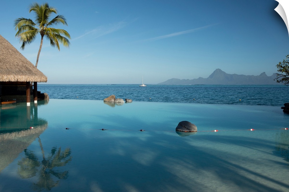 <p>Bungalows and palm trees on the coast, Bora Bora, Society Islands, French Polynesia</p>