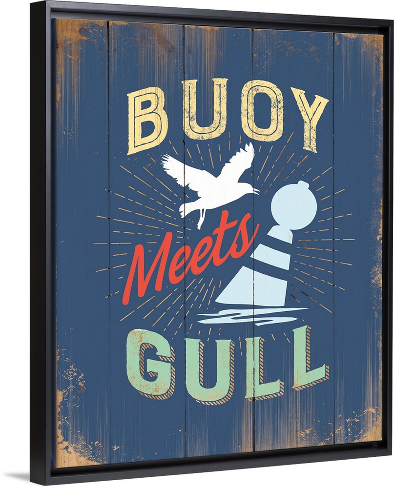 <p>Digital art painting of a poster titled Buoy Meets Gull IN BLUE by JJ Brando.</p>