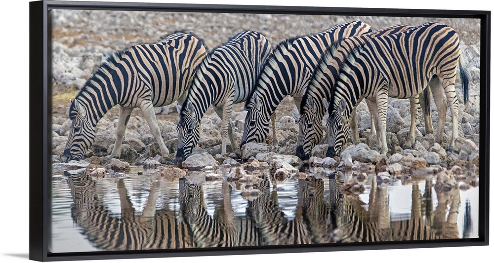 <p>Burchell's Zebras (Equus quagga burchellii) drinking water, Etosha National Park, Namibia</p>
