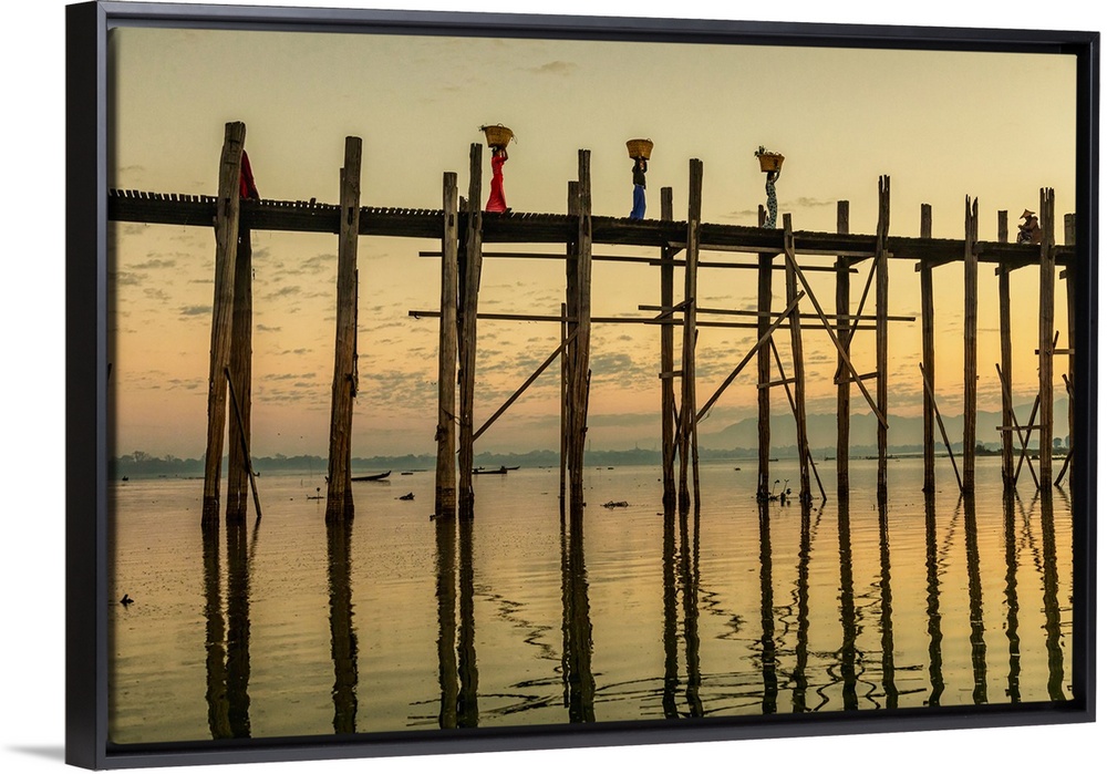 <p>Burmese women walking with baskets on the Ubein Bridge in Mandalay</p>