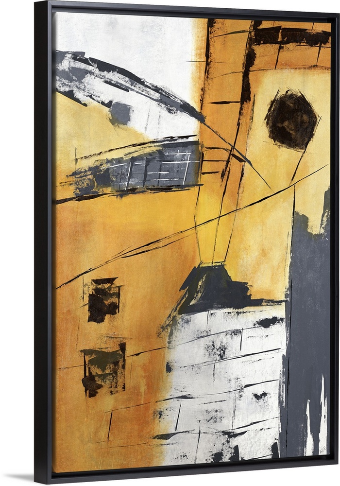 <p>Abstract painting in colors of yellow, gray and orange.</p>