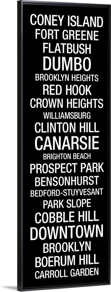 <p>Bus roll canvas of various areas in Brooklyn listed from top to bottom.</p>