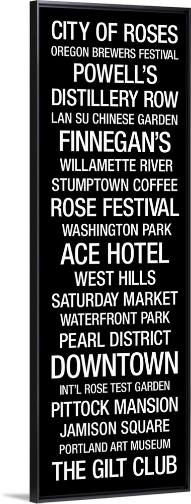 <p>Bus Roll style text highlighting roads, buildings, and festivals that can be found in Portland, Oregon.</p>