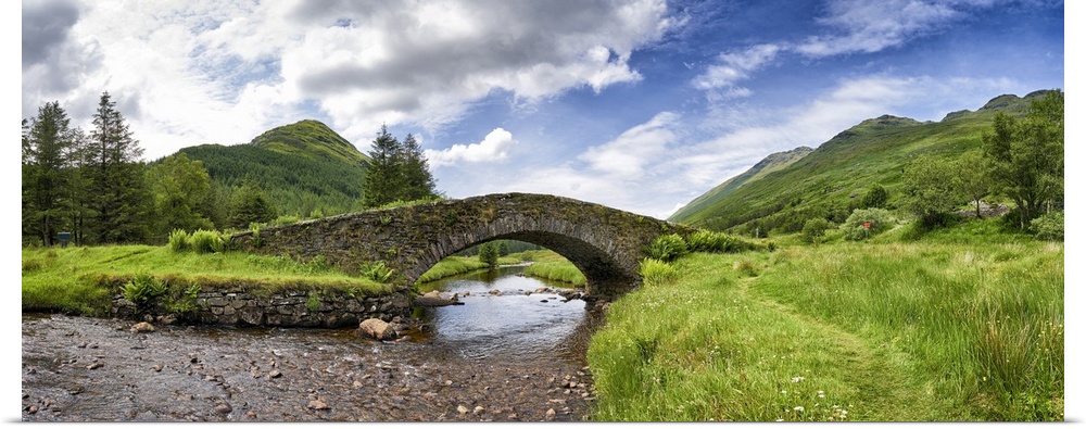 <p>Panoramic view of Butter Bridge over Kinglas Water in the Loch Lomond National Park in Scotland.</p>