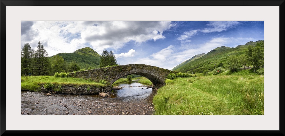 <p>Panoramic view of Butter Bridge over Kinglas Water in the Loch Lomond National Park in Scotland.</p>