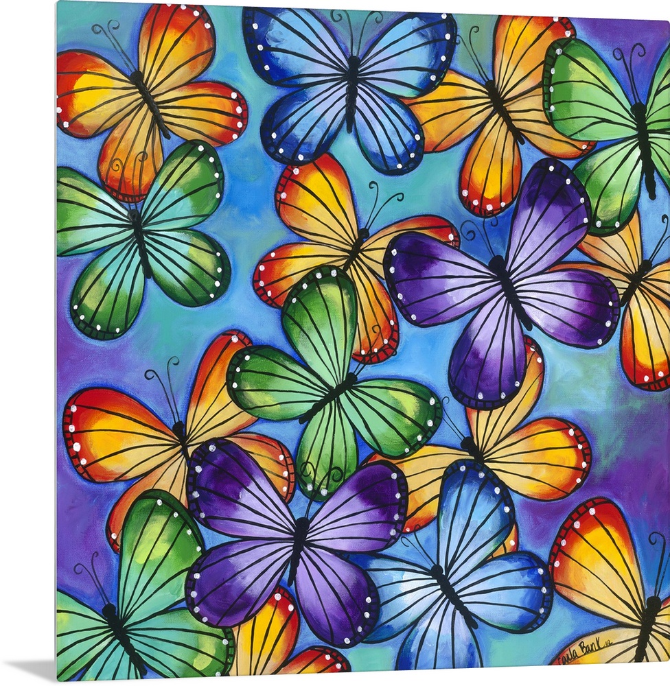 Art Carla Bank Blue Wall Art Decorative Art Painting Purple Wall Art Wildlife Insect and Arachnid Butterfly