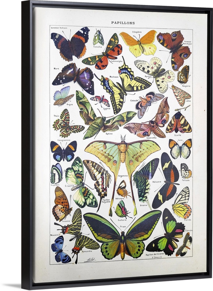 <p>Old illustration about butterflies by Adolphe Philippe Millot and engraved by Demoulin printed in the french dictionary "Dictionnaire Complet et Illustrate" by the editor Larousse in 1889.</p>