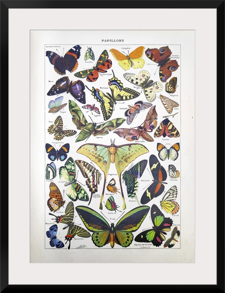 <p>Old illustration about butterflies by Adolphe Philippe Millot and engraved by Demoulin printed in the french dictionary "Dictionnaire Complet et Illustrate" by the editor Larousse in 1889.</p>