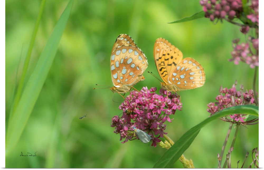 <p>Aphrodite Fritillary (Speyeria aphrodite) butterflies sharing space on pink Joe-Pye Weed flowers.</p>
