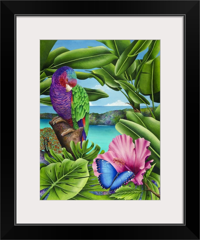 <p>Colorful tropical themed artwork using bright and vibrant colors.</p>