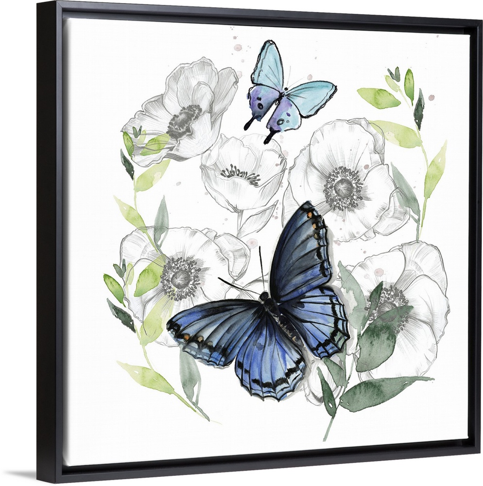 Art Blue Wall Art Decorative Art Florals Painting Jennifer Paxton Parker Watercolor Wildlife Insect and Arachnid Butterfly