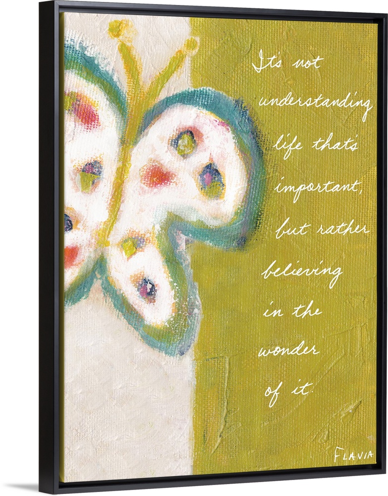 <p>From the abstract to the ultra-realistic, art spans a full spectrum of styles, and everyone has their own unique taste in wall art. However, there seems to always be a place for the whimsical and witty, making artists like Flavia Weedn eternally popular. Combining charming and childlike images with inspirational text, Flavia Weedn creates paintings that touch the heart with nostalgia. Her muses include beautiful butterflies and birds, florals and fruits, and softened sailboats blowing in the breeze. Flavia Weedn adds a subtle message to her prints, creating inspiring and uplifting art that gently blows through the soul like a warm wind of wonder.</p>