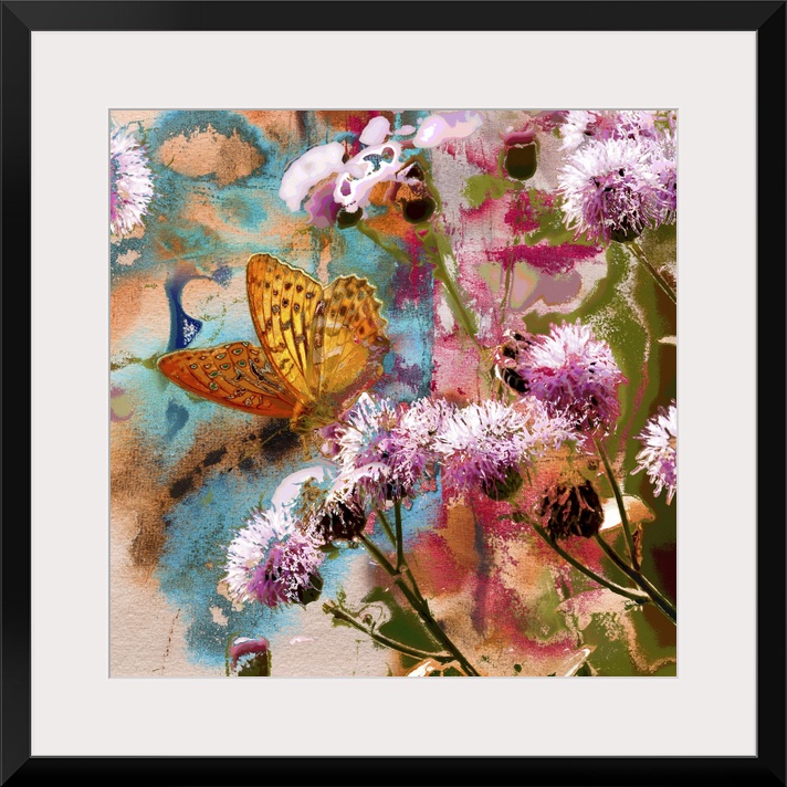 <p>Butterfly on thistle flowers. Originally an abstract, mixed media painting on handmade paper.</p>