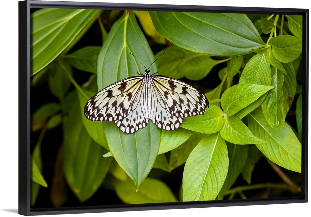 <p>Butterfly perching on leaf in a garden, butterfly rainforest, gainesville, florida, USA.</p>
