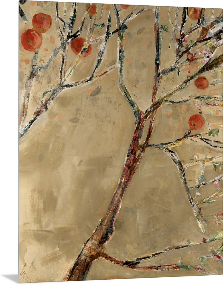 <p>Abstract painting on canvas of tree limbs with fruit growing on them.</p>