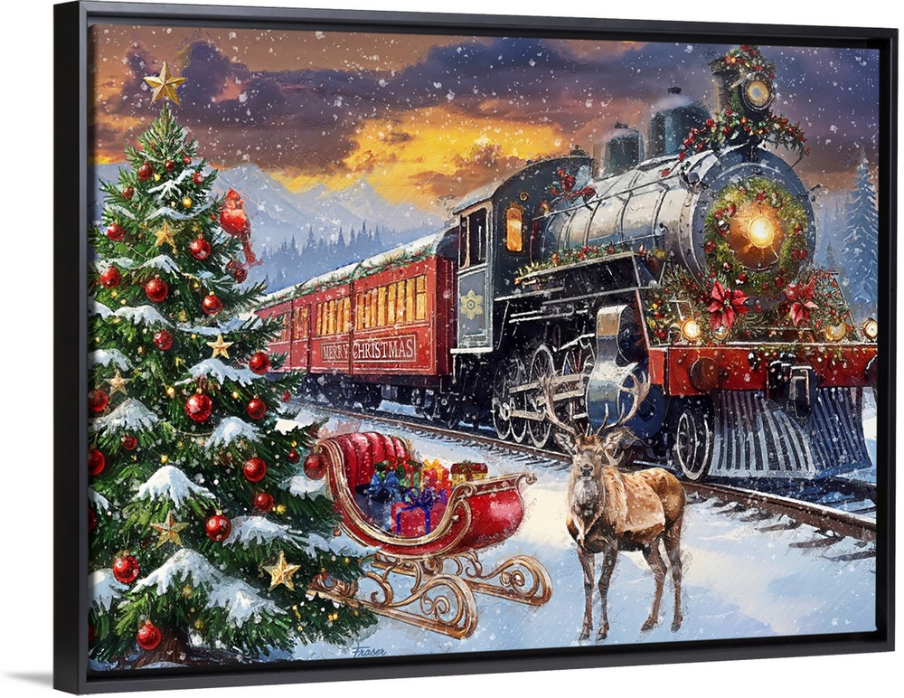Art Gail Fraser Graphic Art Holidays Christmas Transportation Train