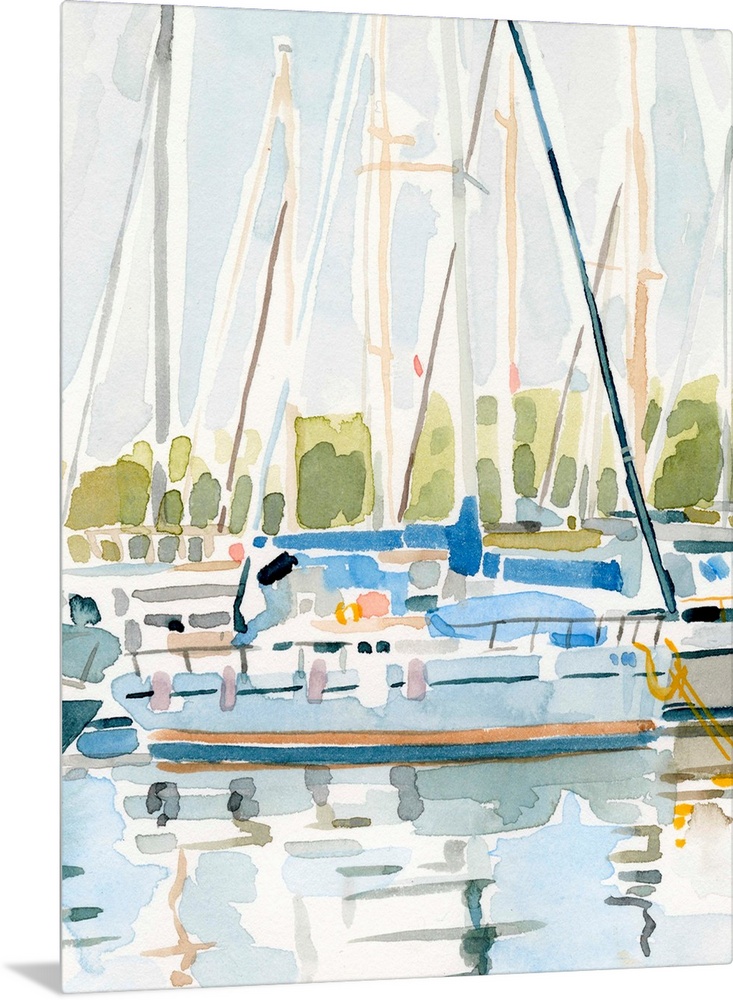 Art Coastal Blue Wall Art Powder Blue Emma Caroline Contemporary Art Rivers, Lakes, and Oceans Harbor Painting Sailboat Watercolor