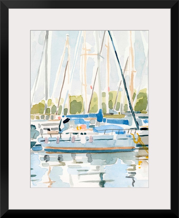 Art Coastal Blue Wall Art Powder Blue Emma Caroline Contemporary Art Rivers, Lakes, and Oceans Harbor Painting Sailboat Watercolor