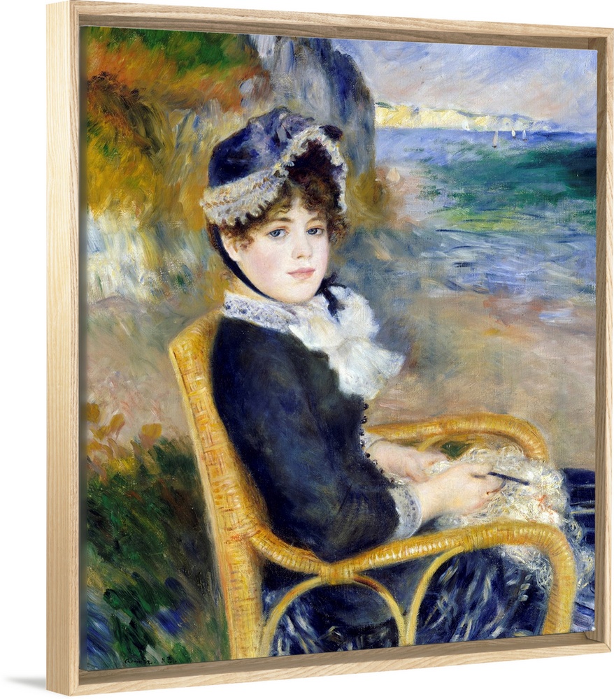 <p>Renoir likely painted this work in his studio, posing his model and future wife, Aline Charigot, in a wicker chair. The beach behind her probably represents the Normandy coast near Dieppe. This canvas reflects the impact of Renoir's trip to Italy in 1881-82, which inspired him to unite the grandeur and simplicity he admired in Renaissance art with the luminosity of Impressionism. His new approach, which he called his dry manner, is evident in Aline's face, with its carefully drawn features and smooth handling of paint. The medley of quick strokes in the background, however, displays the freer technique of Renoir's earlier years.</p>