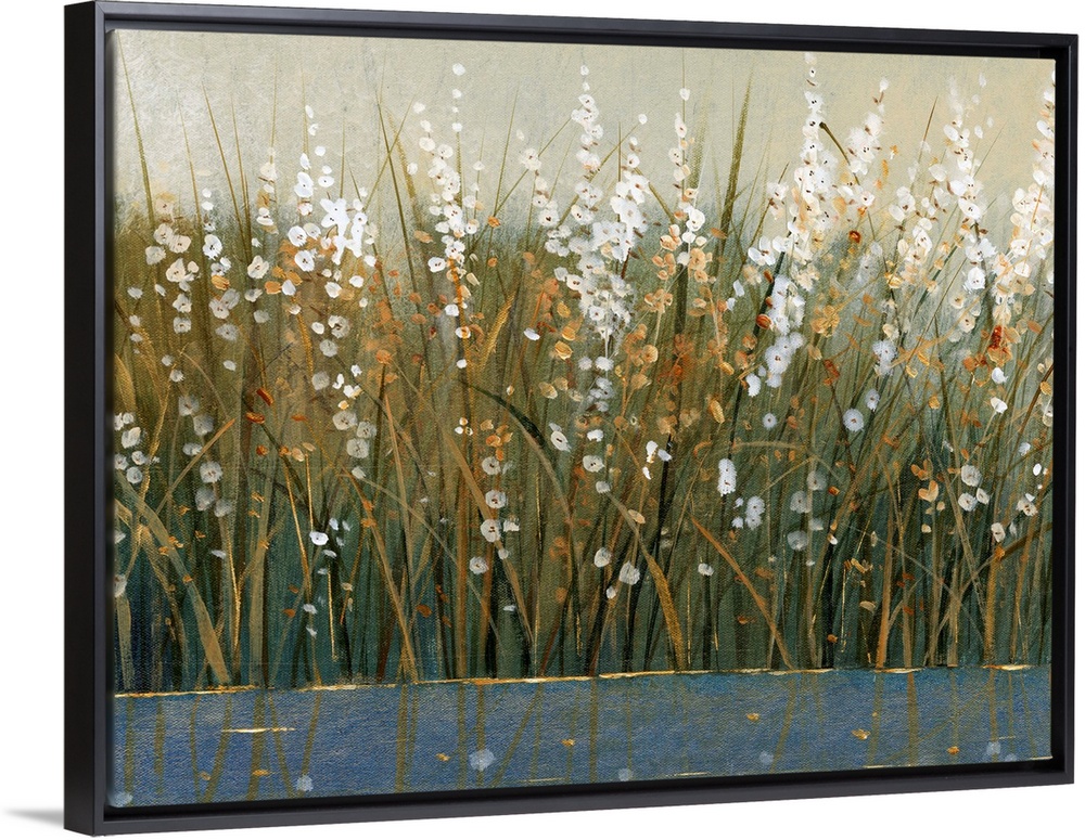 <p>Contemporary painting of wild flowering grasses by the water.</p>