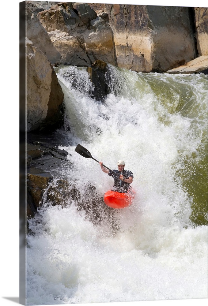 <p>A C-1 paddler goes down the Spout on the Potomac River.</p>