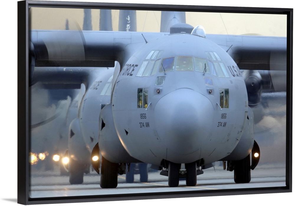 <p>Yokota Air Base, Japan - C-130 Hercules aircraft taxi out for a mission during a six-ship sortie.</p>