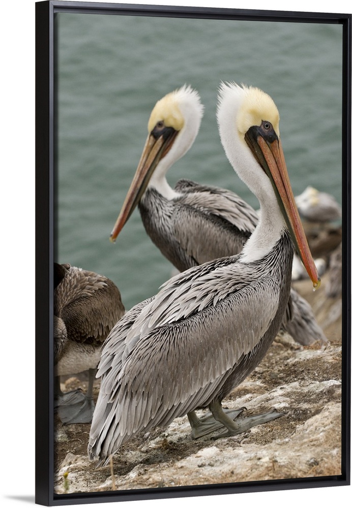 <p>USA, CA, Pismo Beach. Brown Pelicans (Pelicanus occidentalis) on Pelican Point</p>