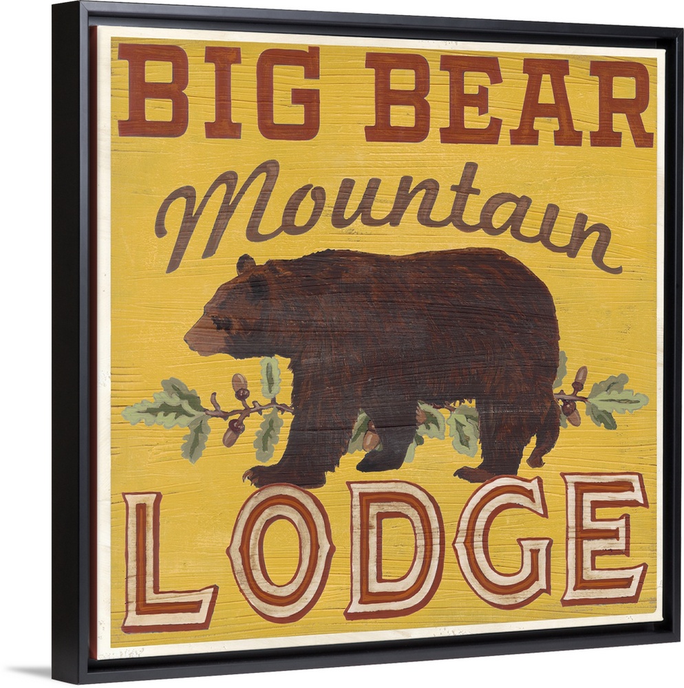 <p>Decorative sign for a cabin or lodge that reads "Big Bear Mountain Lodge."</p>