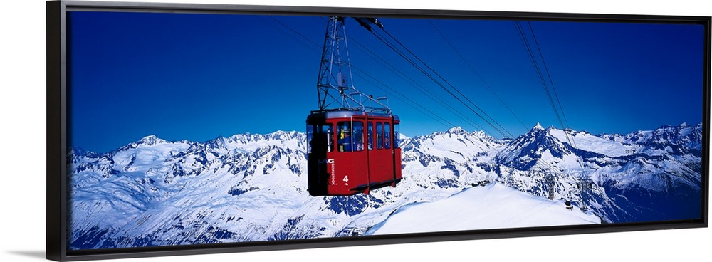 <p>An aerial tramway overlooking the snowcapped mountains in Andermatt, Switzerland.</p>