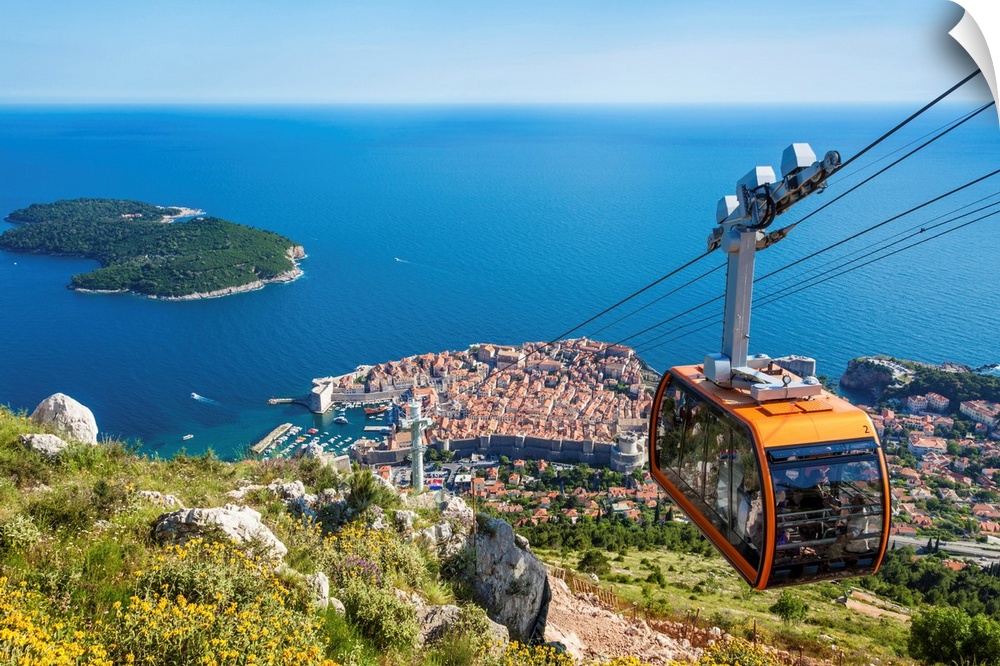 <p>Cable car, Lokrum Island and Dubrovnik Old Town view, Dubrovnik, Dalmatian Coast, Croatia</p>