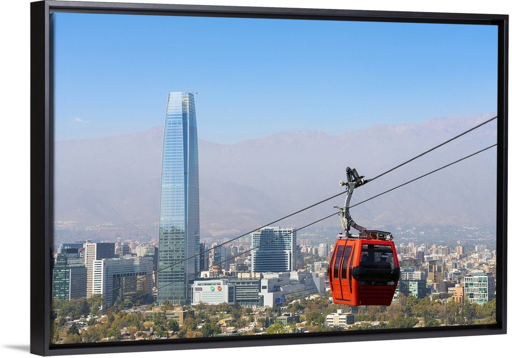 <p>Cable car with Gran Torre Santiago in background, Santiago Metropolitan Park, San Cristobal Hill, Providencia, Santiago, Santiago Province, Santiago Metropolitan Region, Chile</p>