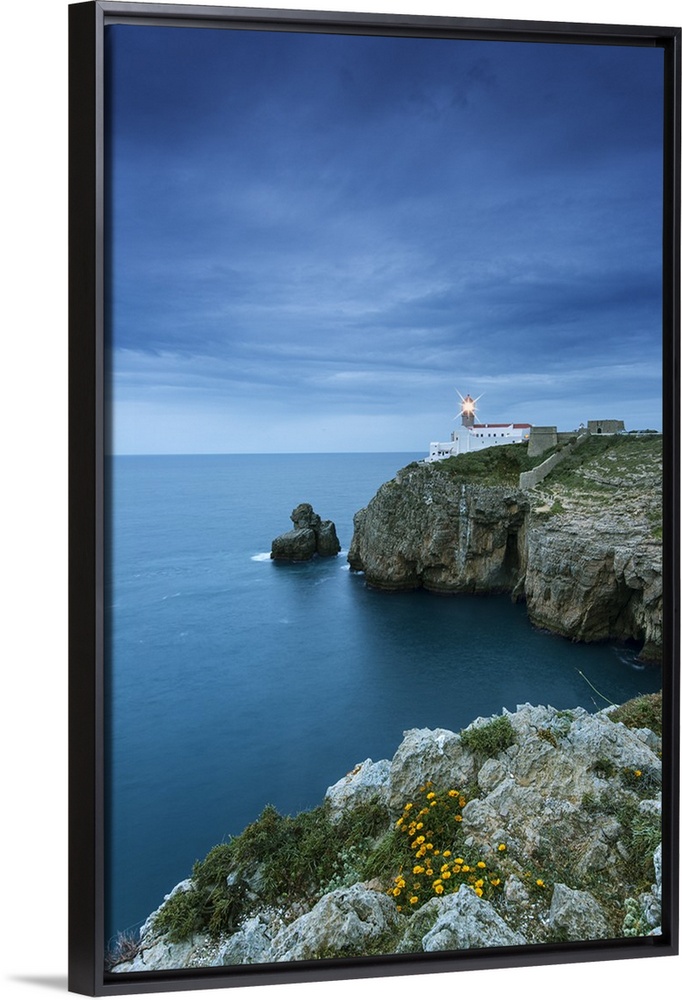 <p>Cabo de Sao Vicente (Cape St. Vincent) and the lighthouse at dusk. The southwesternmost lighthouse in continental Europe. Algarve, Portugal</p>