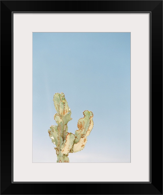<p>Photograph of a cactus against a bright blue sky.</p>