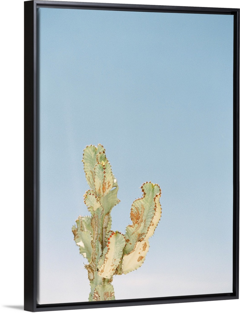 <p>Photograph of a cactus against a bright blue sky.</p>
