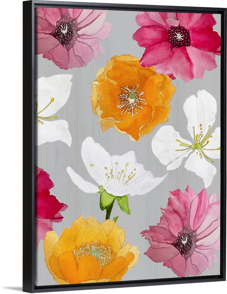 Art Decorative Art Florals Grey Wall Art Orange Wall Art Painting Pink Wall Art Watercolor