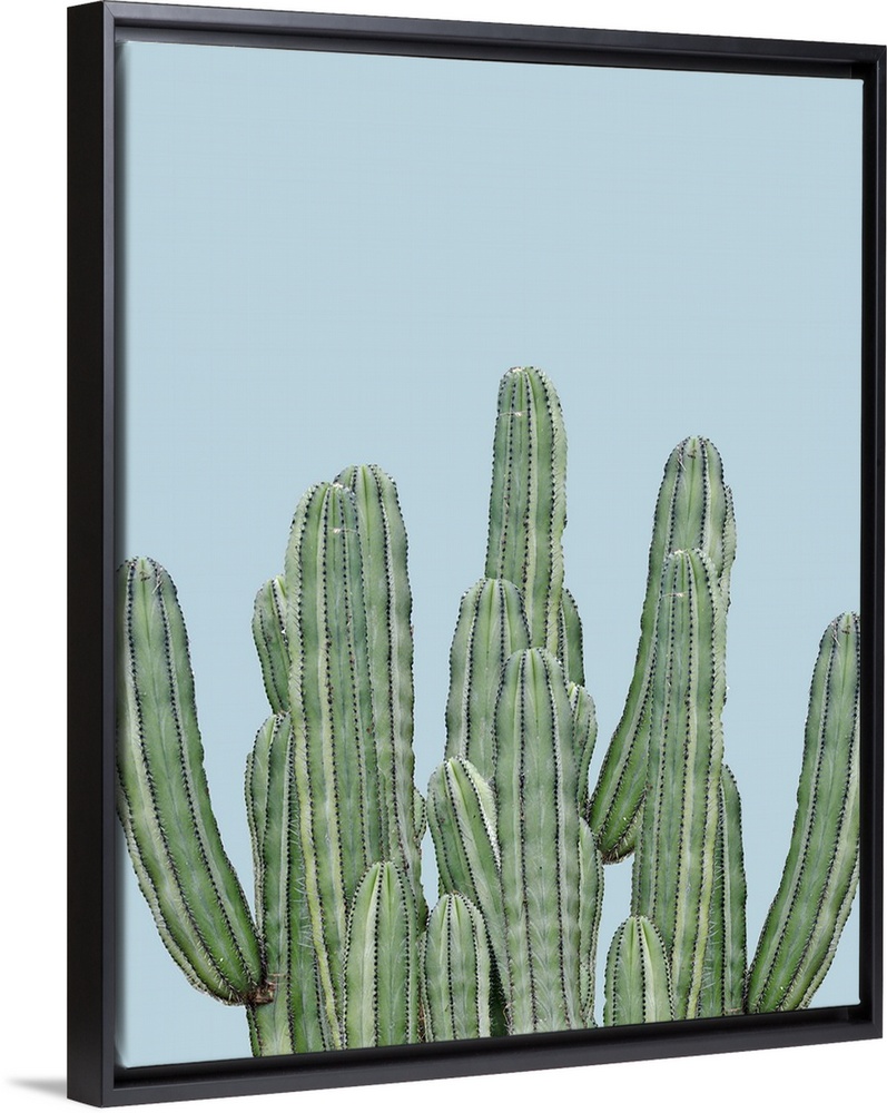 <p>Photograph of long, green cacti on a pale blue background.</p>