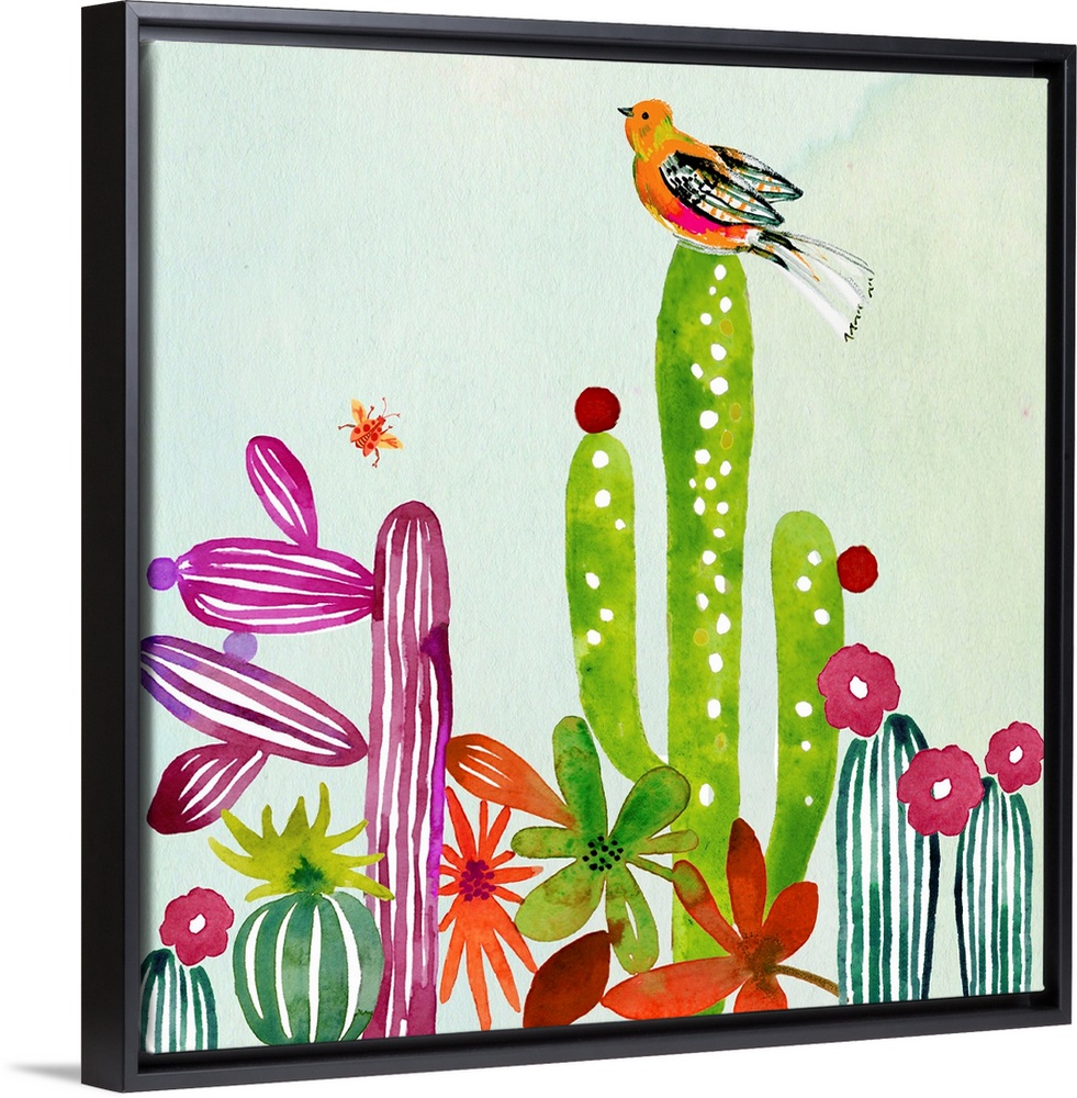Art Decorative Art Florals Cactus Green Wall Art Painting Watercolor Wildlife Bird