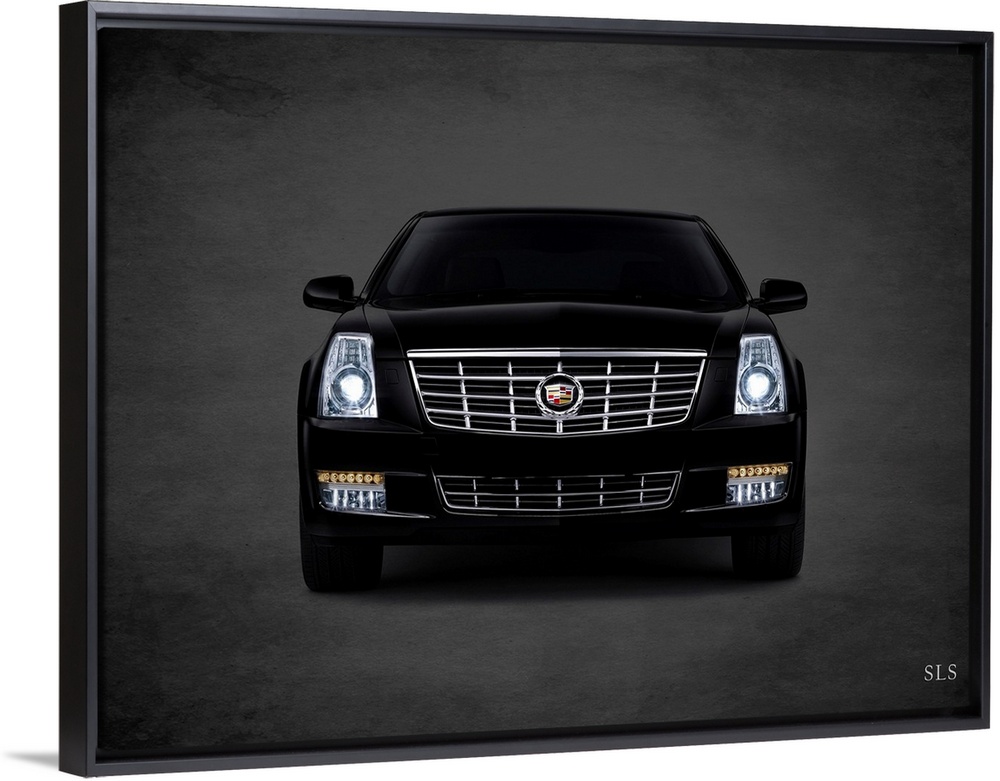 <p>Photograph of a black Cadillac SLS printed on a black background with a dark vignette.</p>