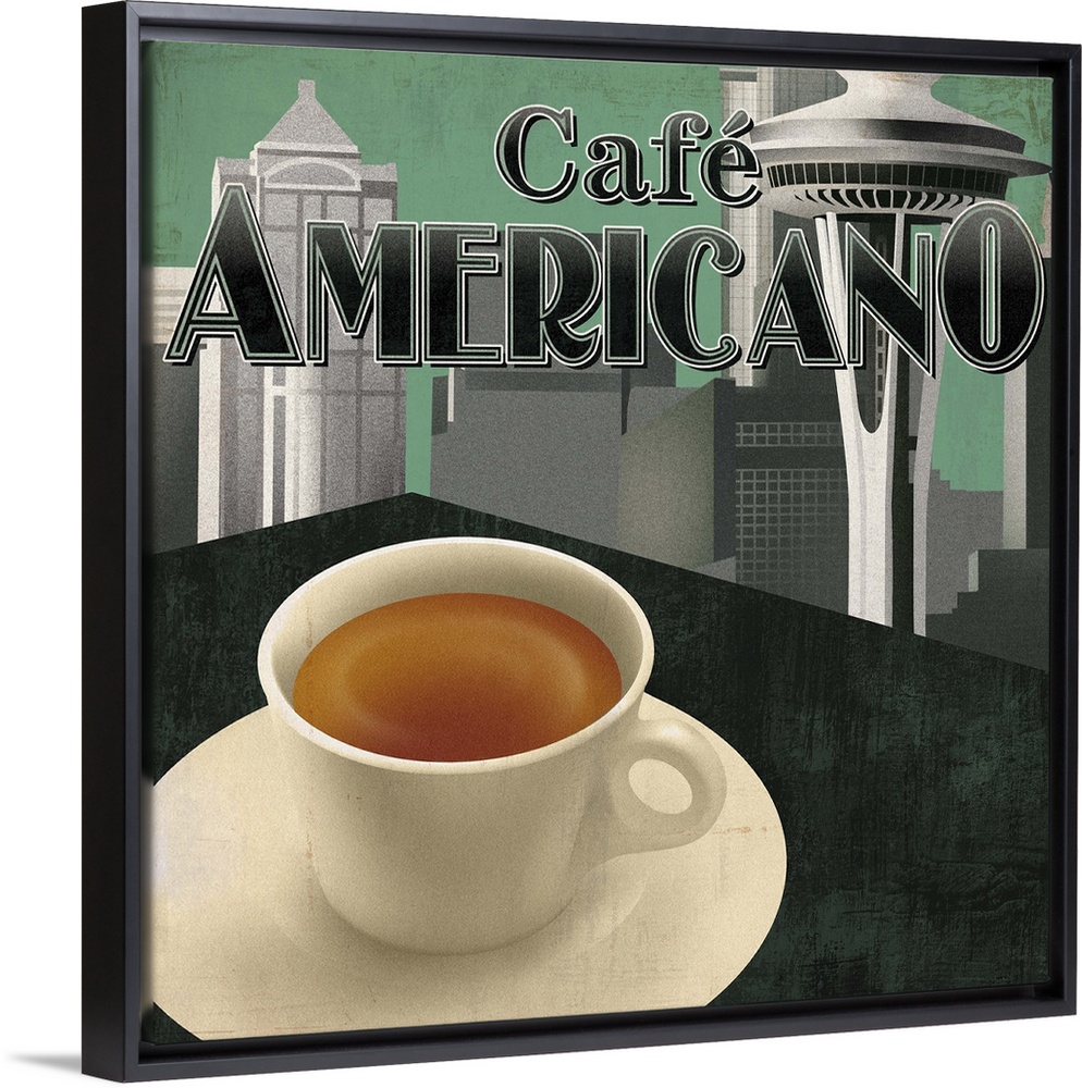 <p>Retro minimalist home decor artwork of a Seattle themed coffee scene.</p>