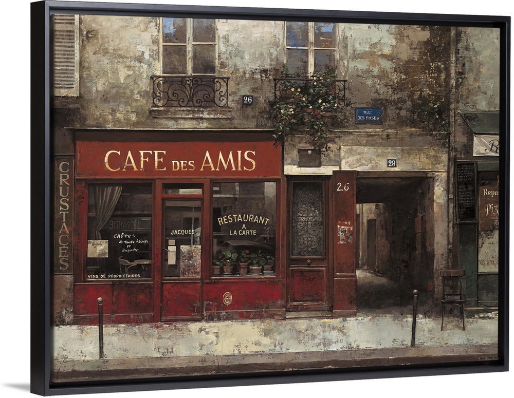 <p>Contemporary painting of a Cafe storefront downtown in a city.</p>