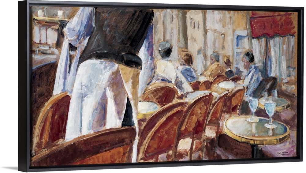 <p>A contemporary painting of a cafe terrace and waiter.</p>