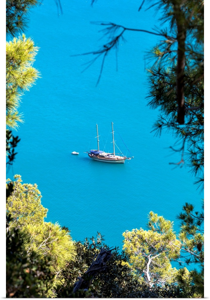 <p>Caicco Saling Boat In Zagare Bay, Loc. Baia Delle Zagare, Mattinata Village, Gargano National Park, Foggia District, Apulia, Italy</p>