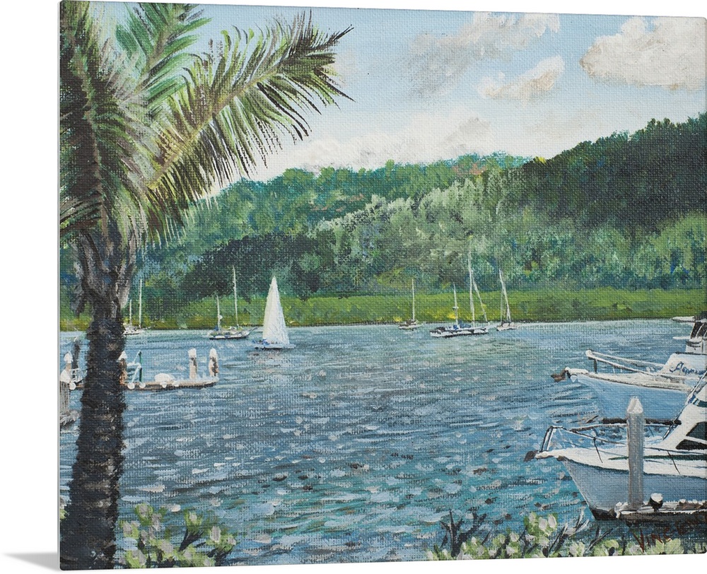 <p>Contemporary painting of a scenic Australian harbor.</p>