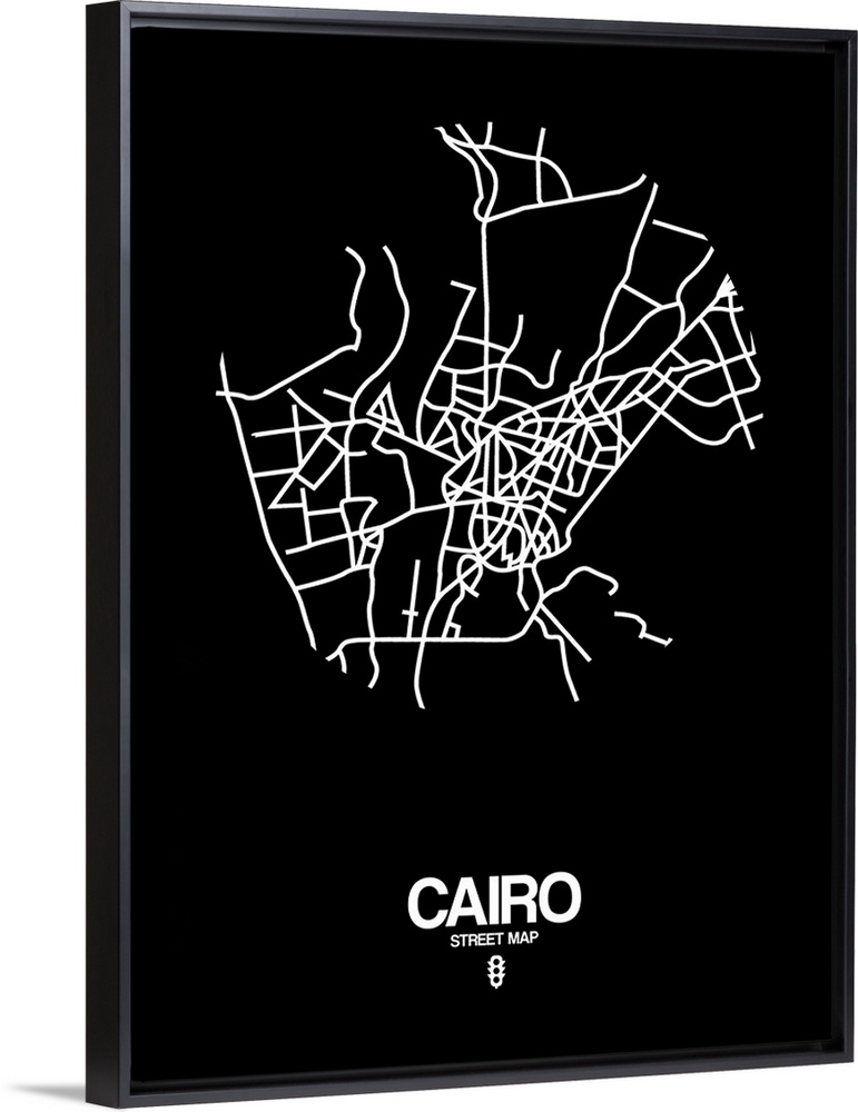 <p>Minimalist art map of the city streets of Cairo in black and white.</p>