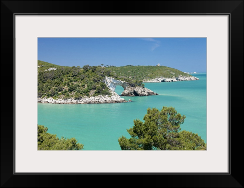 <p>Cala San Felice bay with Architiello di San Felice rock arch, Gargano, Foggia Province, Puglia, Italy, Mediterranean, Europe</p>