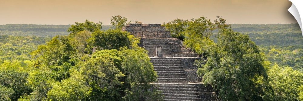 <p>Panoramic photograph of Calakmul archaeological site that is deep in the jungle in Campeche, Mexico, at sunset. From the Viva Mexico Panoramic Collection.</p>