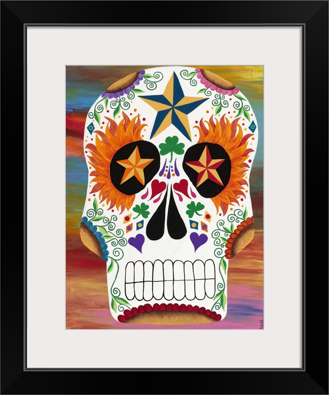 <p>Painting of a decorative sugar skull, celebrating the Day of the Dead.</p>