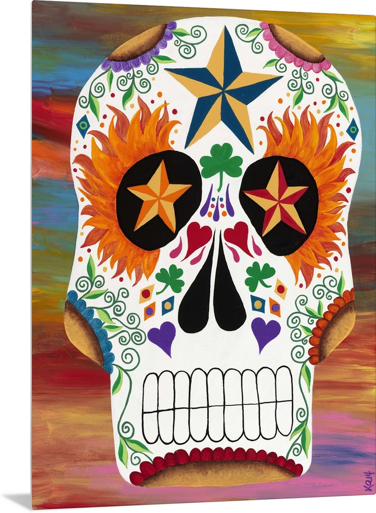 <p>Painting of a decorative sugar skull, celebrating the Day of the Dead.</p>